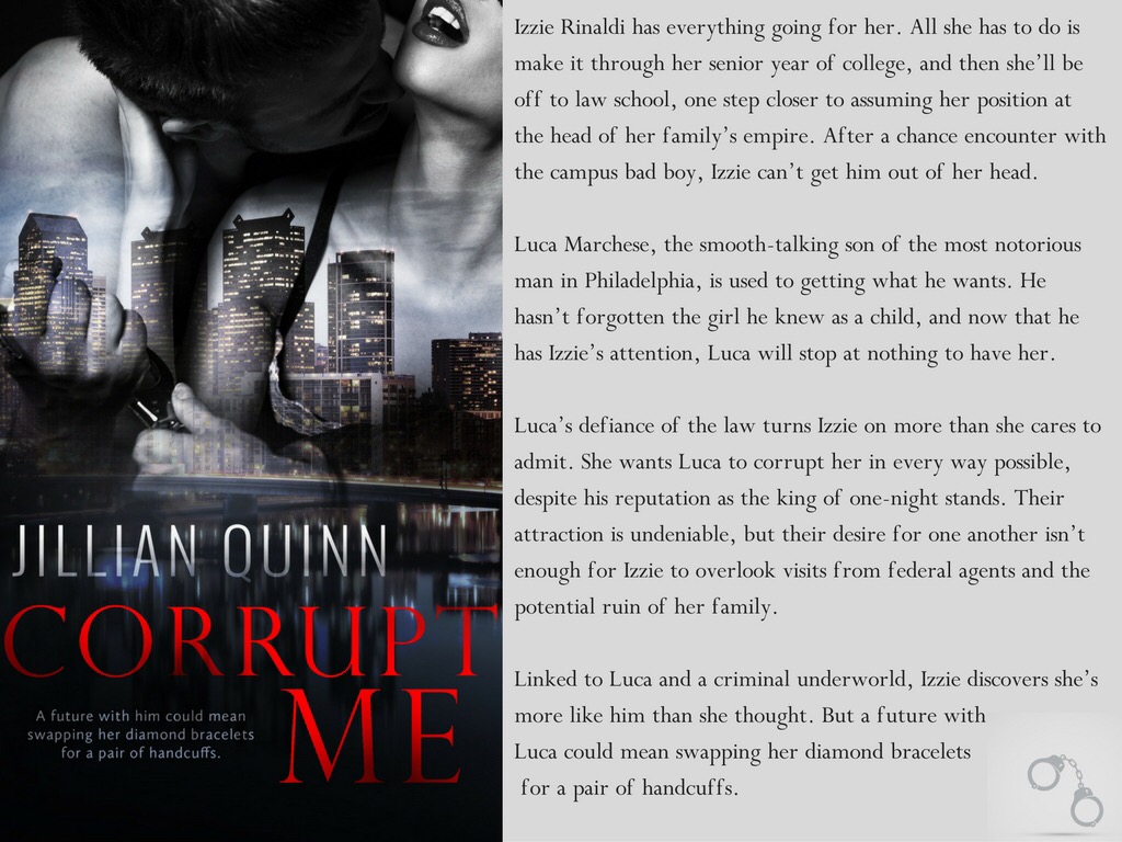 I am beyond excited to be a stop on the blog tour for Corrupt Me today! My friend Jill from Rant and Rave About Books is releasing her debut novel later this month and it’s amazing. I have another stop on the tour that will include my full review later this week, but for now I have a little bit to share with you about the book.