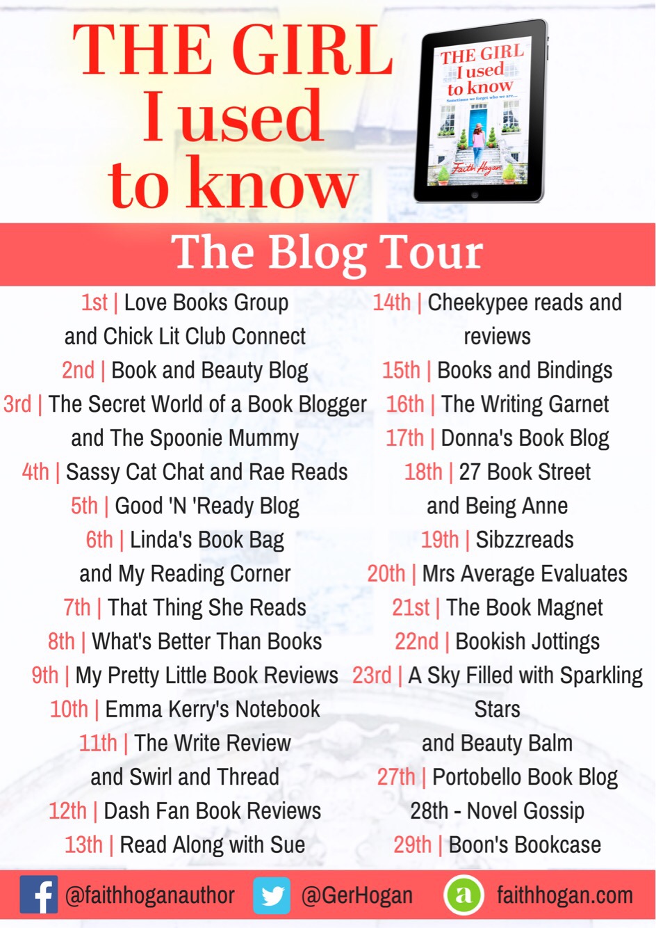 Faith Hogan was born in Ireland. She gained an Honours Degree in English Literature and Psychology from Dublin City University and a Postgraduate Degree from University College, Galway. She has worked as a fashion model, an event’s organiser and in the intellectual disability and mental health sector.