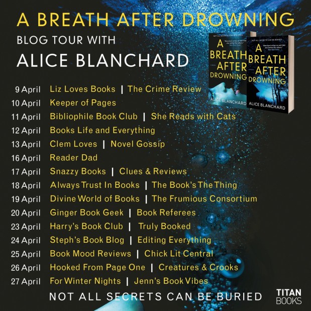 Bio: Alice Blanchard’s new psychological thriller “A Breath After Drowning” (Titan Books) comes out on April 10, 2018. Visit her website: https://aliceblanchard.com/ Or follow her on Twitter: https://twitter.com/AliceBooks333.